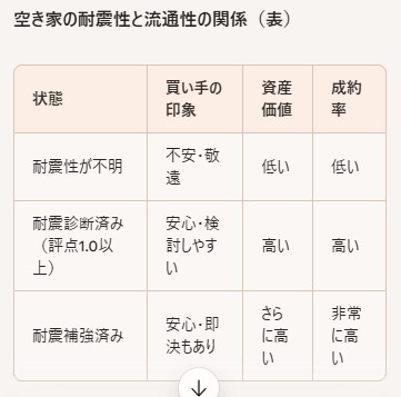 耐震性が不明な空き家は、買い手にとって「リスク物件」と見なされがちです。逆に、耐震診断済みの住宅は安心材料となり、売却や賃貸の成約率が高まります。